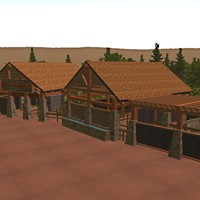 The atmosphere and themeing achieved is that of a north western rocky mountain type of vibe. The architectural design of the surrounding structures in order to adhere to the desired theme is rather rustic in terms of the exposed large wooden beams, wood shingled roofs, and stonework. To add an extra layer of realism, a slight smokey fog with a red hue was added to the surrounding atmosphere.